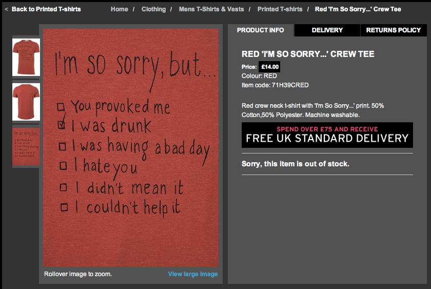 I love a funny t-shirt, but I can’t conceive how these were approved for print. You want good, funny t-shirts? Go to Threadless.com, not Topman.